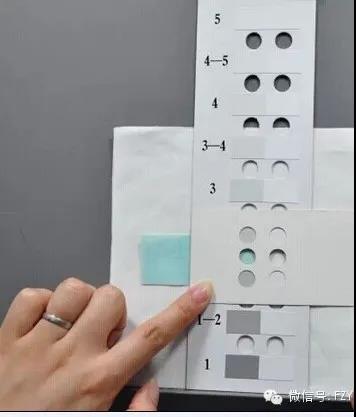 ▼變色牢度評(píng)級(jí) :試后樣與原樣對(duì)比,看變色程度與灰卡的那個(gè)級(jí)別最接近。
