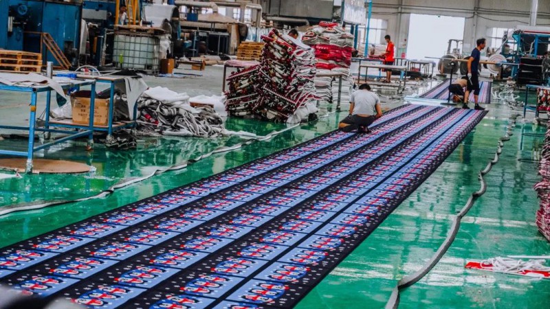 走進(jìn)青島美高林地毯公司生產(chǎn)車間,現(xiàn)代化的免水洗高清噴墨流水生產(chǎn)線正在高效運(yùn)轉(zhuǎn),車間內(nèi)呈現(xiàn)出一派蓬勃發(fā)展的忙碌狀態(tài)。據(jù)車間負(fù)責(zé)人介紹:“公司以尼龍、滌綸塊毯生產(chǎn)為主,80%的地毯出口國外,歐美商超等渠道均有,工廠內(nèi)正在生產(chǎn)一個(gè)26萬平方米的尼龍家用塊毯大訂單,選用數(shù)碼印花機(jī)生產(chǎn),3個(gè)月交貨期,預(yù)計(jì)7月中旬發(fā)往美國。”