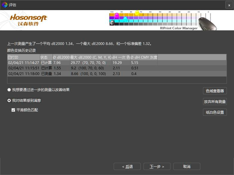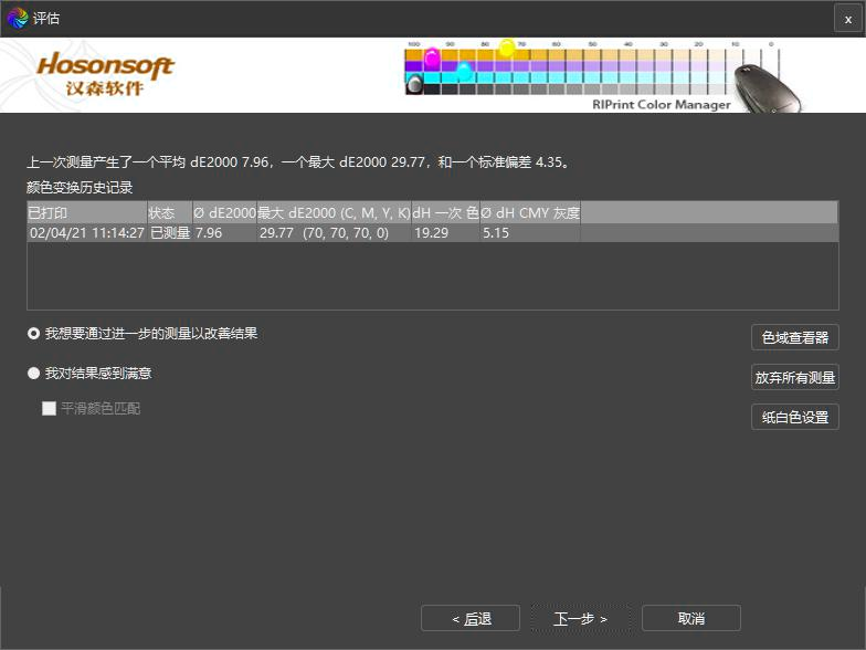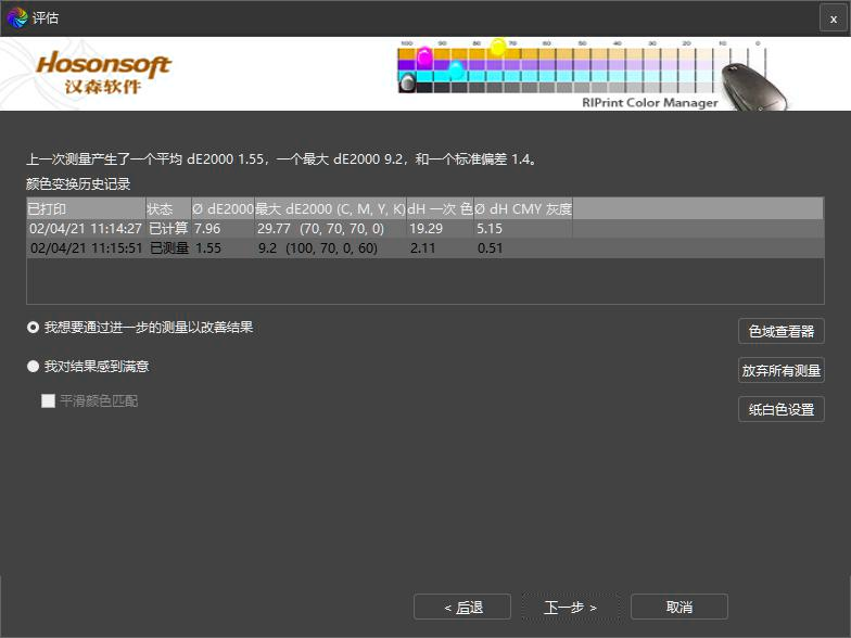●循環(huán)樣色 一般平均ΔE≤1.5 完成匹配●