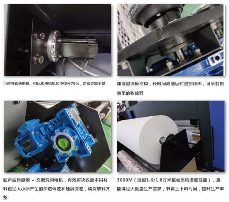 1.后放后收裝置標(biāo)配3000m收放料(選配1.6/1.8萬米整卷原紙搭載性能);