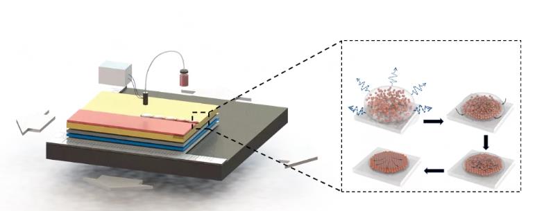 圖1. 噴墨打印工藝及量子點成膜示意圖