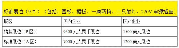 1、標準展位(9㎡)(包括:圍板、楣板、一桌兩椅、二只射燈、220V電源插座)