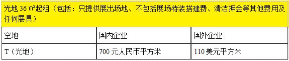 2、光地36㎡起租(包括:只提供展出場地、不包括展場特裝搭建費、清潔押金等其他費用及任何展具)