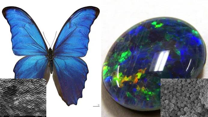 蝴蝶翅膀和蛋白石的結(jié)構(gòu)色。圖片來源于網(wǎng)絡(luò)