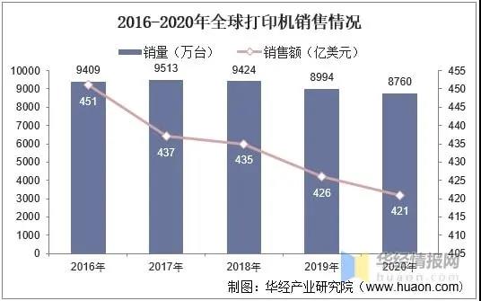 華經(jīng)產(chǎn)業(yè)研究院近日發(fā)布了《2021-2026年中國(guó)打印耗材市場(chǎng)發(fā)展前景預(yù)測(cè)及投資戰(zhàn)略咨詢(xún)報(bào)告》。據(jù)報(bào)告統(tǒng)計(jì),截至2020年全球打印機(jī)銷(xiāo)量8760萬(wàn)臺(tái),銷(xiāo)售額為421億美元。