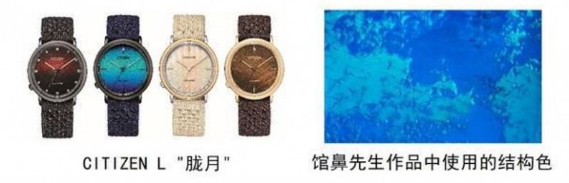 西鐵城時(shí)計(jì)株式會(huì)社計(jì)劃于今年7月在日本限量發(fā)售以關(guān)心環(huán)境和人類為品牌理念的可持續(xù)發(fā)展品牌CITIZEN L旗下"朧月系列"最新腕表,表盤上就應(yīng)用了這項(xiàng)技術(shù)。"朧月系列"融合了從生物體的形態(tài)和結(jié)構(gòu)中學(xué)到的"仿生學(xué)"技術(shù),概念與"結(jié)構(gòu)色噴墨技術(shù)"高度吻合,因此和富士膠片從測試階段就開始合作,在表盤上再現(xiàn)結(jié)構(gòu)色。