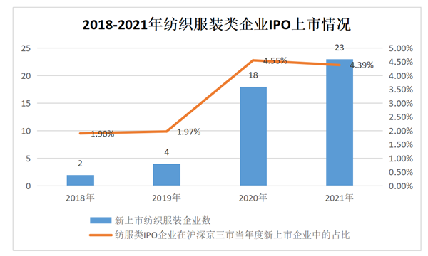 2018-2021年來紡織服裝類企業(yè)上市情況