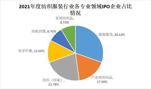 2021年度紡織服裝行業(yè)各專業(yè)領(lǐng)域新上市企業(yè)占比情況