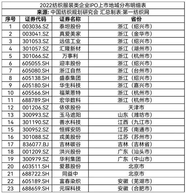 三、2021年紡織服裝類企業(yè)IPO上市地域分布情況