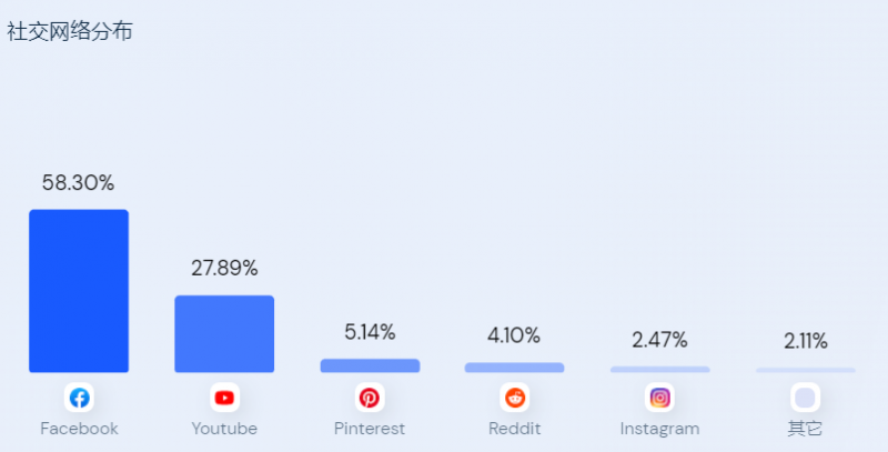 根據(jù) Similarweb 5月14日的數(shù)據(jù),Cupshe 超過(guò)一半(58.3%)的社交媒體PC端流量來(lái)自 Facebook,其余來(lái)自 YouTube(27.89%)、Pinterest(5.14%)、Reddit(4.10%)、和Instagram(2.47%)。Facebook 顯然是其社交媒體營(yíng)銷的主要戰(zhàn)場(chǎng)。