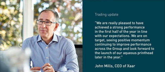 首席執(zhí)行官約翰米爾斯評論說:“我們很高興在上半年取得了符合我們預(yù)期的強(qiáng)勁業(yè)績。我們正朝著目標(biāo)前進(jìn),看到積極的勢頭繼續(xù)改善整個集團(tuán)的業(yè)績。我們繼續(xù)在戰(zhàn)略和運(yùn)營方面取得進(jìn)展,并繼續(xù)實現(xiàn)長期盈利增長。盡管宏觀經(jīng)濟(jì)前景仍然不確定,但我們對未來充滿信心和興奮,并期待在今年晚些時候推出我們的水性打印頭。”