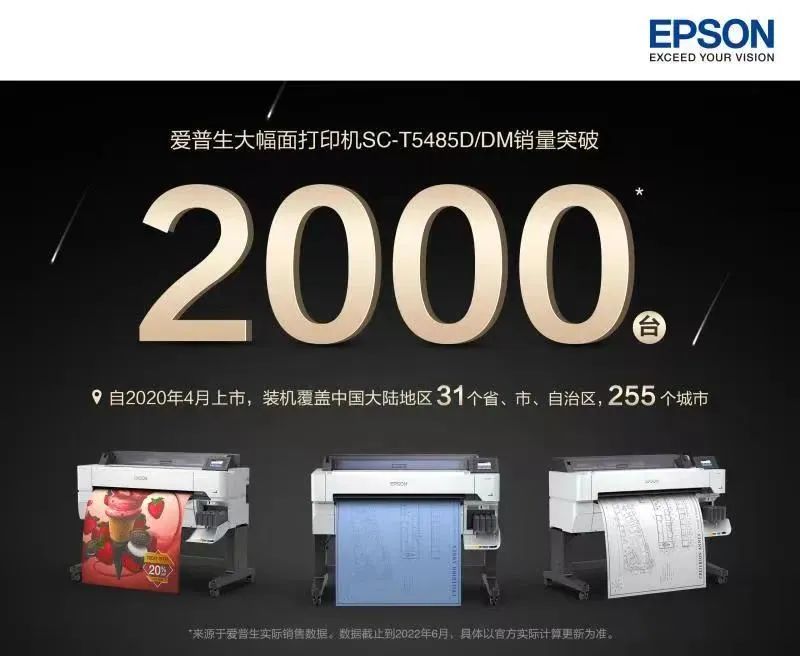 愛普生為中國圖文用戶“量身定制”的高性價比機型,SureColor T5485D/DM系列大幅面彩色噴墨打印機自2020年4月發(fā)售以來,短短兩年多的時間銷量已成功突破2000臺*1!