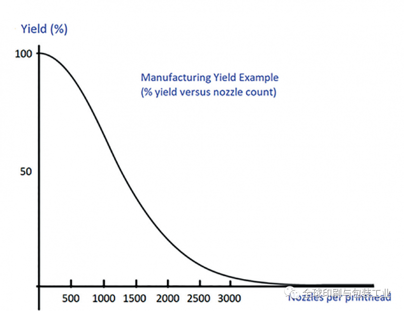 將噴頭中的噴嘴數(shù)量加倍(從 600dpi 變?yōu)?1200dpi 時會發(fā)生這種情況)不僅會使最終噴頭的制造良率減半,而且很可能會更大幅度地降低良率。這是因為總體產(chǎn)量通常與噴頭中的噴嘴數(shù)量呈正態(tài)分布。一些噴頭制造商(例如京瓷)通過將每個噴頭組裝成多個較小的模塊來繞過此限制。
