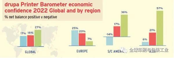 該報告證實了印刷業(yè)在過去幾年中經(jīng)歷了“過山車”。他們的數(shù)據(jù)顯示,信心在 2016/17 年達到頂峰并隨后下降。但鑒于過去兩年的挑戰(zhàn),今年的信心水平令人矚目。比 2019 年新冠疫情之前的水平略高。大多數(shù)地區(qū)的印刷商的積極預(yù)期是基于疫情緩解和供應(yīng)鏈問題得到解決的影響。