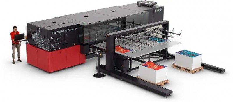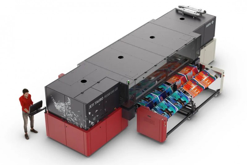 愛克發(fā)的Jeti Tauro H3300 UHS LED超高速板卷一體打印機(jī),適合極端工作負(fù)載和7×24小時工業(yè)化生產(chǎn),以最低的墨水消耗突出的質(zhì)量。為了達(dá)到最高的效率和方便,它具有多種自動化選項,包括自動裝卸。