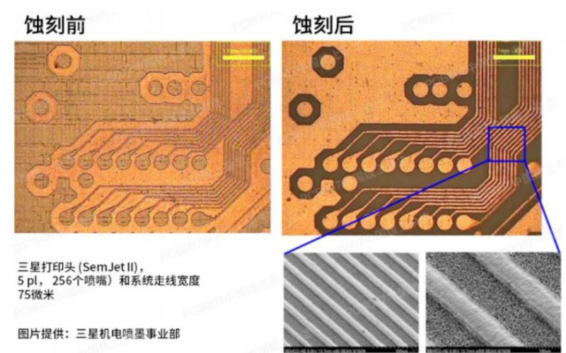 圖5展示了使用有5個(gè)pl-256噴嘴的三星打印頭在三星拼板上打印的蝕刻、電鍍抗蝕劑。