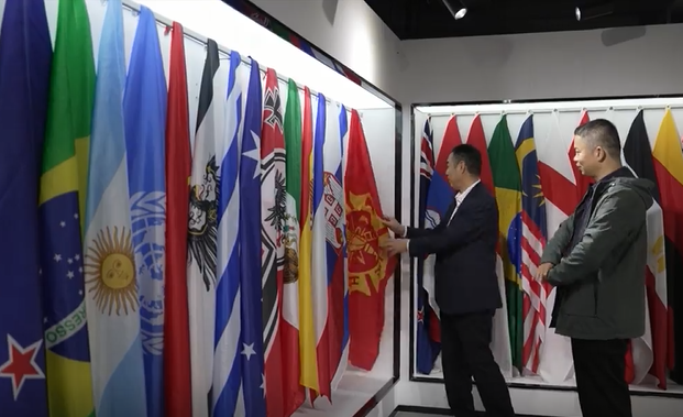公司內(nèi)展示著各國旗幟