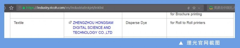 2023年01月14日,理光官網(wǎng)公布了此消息,這也一定程度上展示了鴻盛數(shù)碼墨水與噴頭匹配的安全性和兼容性,進(jìn)一步提升了鴻盛數(shù)碼在國際的影響力。