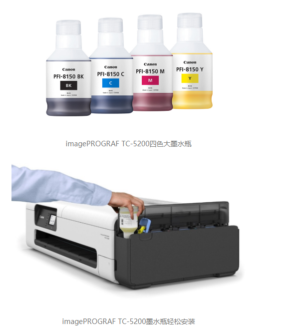 2023年2月16日,佳能(中國)有限公司正式宣布推出佳能首款桌面型大幅面打印機imagePROGRAF TC-5200,纖薄機身集中多項核心技術,滿足居家、小型或臨時性辦公場所工作人員對節(jié)省辦公空間、簡便操作、多種尺寸高品質打印輸出的需求。設備使用170ml規(guī)格的大容量墨水瓶,適合連續(xù)輸出,對環(huán)境友好,實現低功耗運行,打印時耗能僅為28W,是設計、建筑、餐飲與零售等多行業(yè)從業(yè)人員的貼心選擇。
