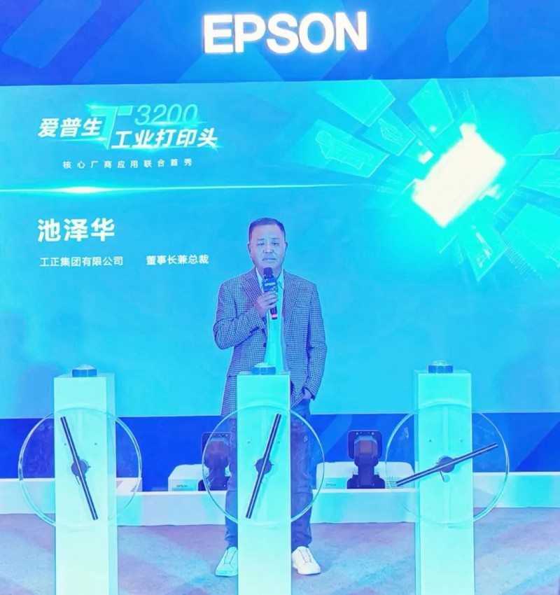 隨后,工正集團(tuán)有限公司董事長兼總裁池澤華發(fā)表致辭。他表明工正集團(tuán)與愛普生合作已有六七年時間,雙方是密切的合作伙伴。T3200工業(yè)打印頭擁有2個研發(fā)團(tuán)隊,前期投入力度非常大,與同行相比具有更高的性價比、更穩(wěn)定的輸出質(zhì)量和更高的產(chǎn)出品質(zhì)。接下來,工正集團(tuán)將繼續(xù)與愛普生深化合作,擴大T3200工業(yè)打印頭的市場應(yīng)用規(guī)模。