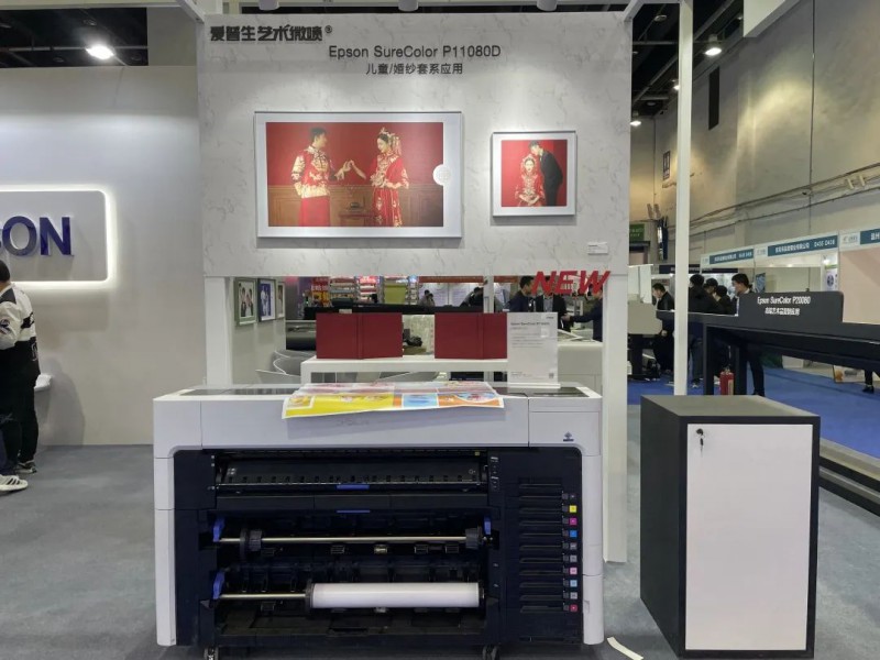 此次展會(huì),可以近距離看到設(shè)備帶來(lái)的優(yōu)異輸出,很多紅色系列的婚紗影集樣品在距離設(shè)備最近的地方擺放著,輸出作品呈現(xiàn)最艷麗的中國(guó)紅。