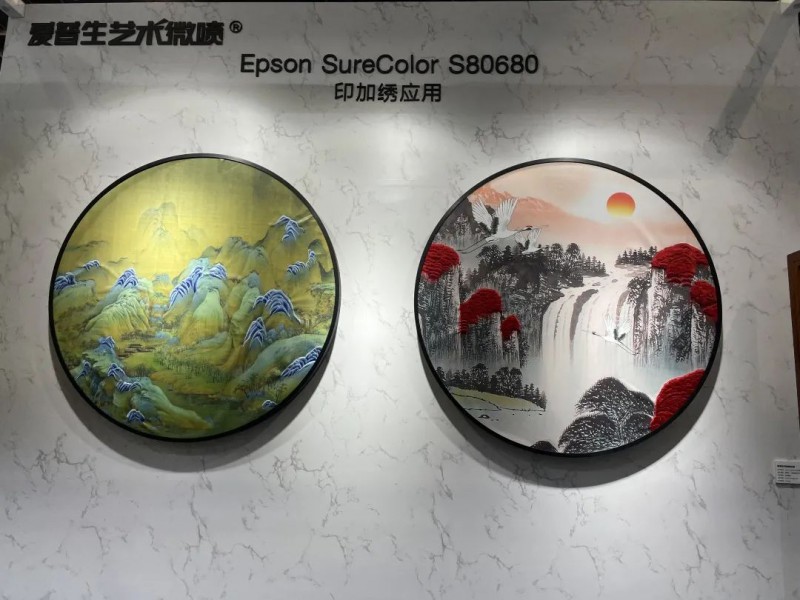 除此之外,本次展會(huì)利用該設(shè)備首次推出“印加繡”的解決方案,在真絲布上直接輸出打印,再通過(guò)人工或機(jī)繡提升畫(huà)面的層次感,十分貼合當(dāng)下較為火爆的裝修方案,是奪得市場(chǎng)競(jìng)爭(zhēng)的必備利器。