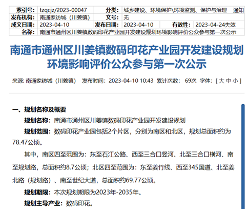 近日,南通市通州區(qū)川姜鎮(zhèn)發(fā)布了南通市通州區(qū)川姜鎮(zhèn)數(shù)碼印花產(chǎn)業(yè)園開發(fā)建設(shè)規(guī)劃環(huán)境影響評價公眾參與第一次公示,具體內(nèi)容如下: