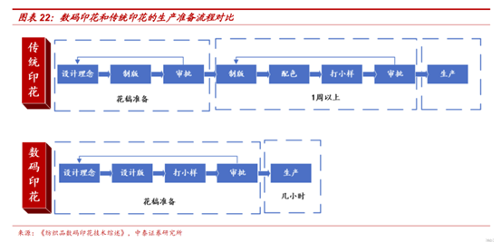 數(shù)碼印花相比傳統(tǒng)印花更能適應(yīng)下游“小單快反”的需求,快時尚龍頭希音(SHEIN)憑借“小單快反”模式成為全球快時尚龍頭。 希音成立于 2008 年,成立之初主要開展婚紗、禮服出口業(yè)務(wù)。2012 年, 希音放棄原有業(yè)務(wù)轉(zhuǎn)型時尚女裝自主設(shè)計、加工和出口業(yè)務(wù),2020年,希音銷售額近100億美元,連續(xù) 9年復(fù)合增長率超過100%,成長為全球 B2C快時尚跨境電商品牌。希音沒有自己的生產(chǎn)工廠,訂單全部由具有“小單快反”生產(chǎn)能力代工廠完成。而數(shù)碼印染相較于傳統(tǒng)印染更能支撐“小單快反”模式,數(shù)碼噴印無需制板,打樣時間由傳統(tǒng)工藝的1周縮短為幾小時,可以隨時按需要進行生產(chǎn),而且在希音小單100件-500件需求量下,數(shù)碼印染的生產(chǎn)成本要低于傳統(tǒng)圓網(wǎng)、平網(wǎng)印染的生產(chǎn)成本。