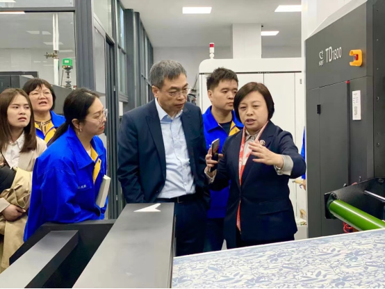 近日,中國(guó)紡織工業(yè)聯(lián)合會(huì)副秘書(shū)長(zhǎng)、紡織之光科技教育基金會(huì)理事長(zhǎng)葉志民,中國(guó)紡織工業(yè)聯(lián)合會(huì)行業(yè)發(fā)展部副主任、中國(guó)紡織建設(shè)規(guī)劃院副院長(zhǎng)郭宏鈞等一行回訪考察榮獲“紡織之光”2022年度中國(guó)紡織工業(yè)聯(lián)合會(huì)科技進(jìn)步獎(jiǎng)一等獎(jiǎng)“一次成型紡織雙面數(shù)碼印花技術(shù)、裝備及應(yīng)用”項(xiàng)目完成單位達(dá)利絲綢(浙江)有限公司。