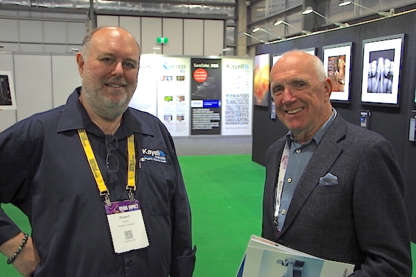 Kayell 澳大利亞董事總經(jīng)理 Rob Gatto 和 Print 21 的 Patrick Howard 在 Visual Impact Sydney 的 Kayell 工作室外