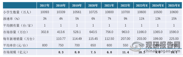 根據教育部數據,2022年全國共有普通小學14.91萬所。全國小學招生1701.39萬人;在校生1.07億人。全國小學階段教育56人及以上的大班1.38萬個,比上年減少0.72萬個,大班占總班數的比例為0.48%,比上年下降0.25個百分點。根據觀研天下計算,2022年家用打印機滲透率已經達到9%,雖然處于較低水平,但是滲透率出現(xiàn)了加速增長態(tài)勢,市場規(guī)模也超過11億元,未來市場空間可期。