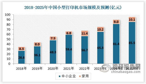 2017-2025年中國中小企業(yè)用打印機市場規(guī)模及預測