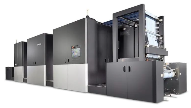其噴頭來自于京瓷,分辨率為1200 x 1200 dpi,6個(gè)噴頭組各有7個(gè)噴頭,該印刷機(jī)還包括自動(dòng)套準(zhǔn)控制和缺失噴嘴補(bǔ)償。其水性油墨的能力使其適用于食品包裝印刷,但尚不完全清楚油墨的來源。據(jù)介紹,這種油墨來自富士膠片,該公司正在美國(guó)建設(shè)一個(gè)全新的軟包裝油墨工廠,未來油墨將在該工廠生產(chǎn)。