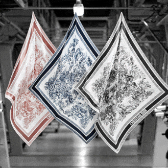 迪奧品牌的茹伊印花絲巾采用的雙面印花技術(shù),這款絲巾使用了手繪的方式,并應(yīng)用了宏華的雙面定位印花技術(shù),在完成正面印花后,反面也進(jìn)行了印花處理,使得絲巾正反兩面都呈現(xiàn)出高檔的效果。