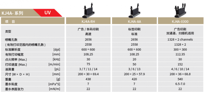 京瓷噴墨打印頭KJ4A(UV)系列規(guī)格