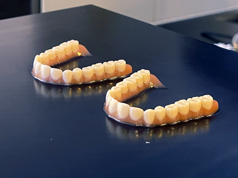 使用 Quantica 打印頭通過單一流程使用多種材料 3D 打印假牙。圖片由 Quantica 提供。