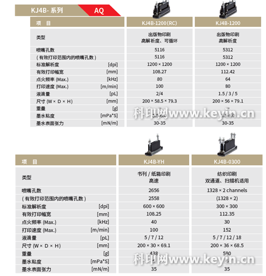 圖4:京瓷噴墨打印頭KJ4B(水性)系列規(guī)格
