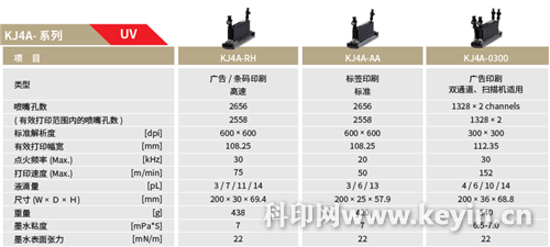 圖5:京瓷噴墨打印頭KJ4A(UV)系列規(guī)格
