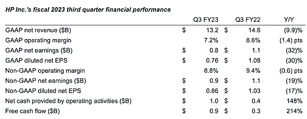 惠普公司 2023 財(cái)年第三季度