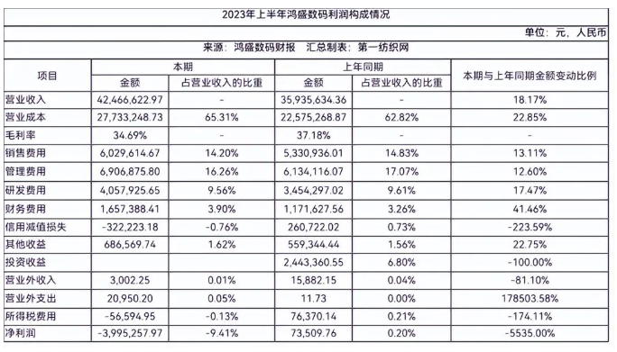 2023年上半年,鴻盛數(shù)碼實(shí)現(xiàn)營(yíng)業(yè)收入4246.66萬(wàn)元,同比增長(zhǎng)18.17%,主要是得益于紡織品相關(guān)的墨水產(chǎn)品取得較好增長(zhǎng);實(shí)現(xiàn)歸屬于掛牌公司股東凈利潤(rùn)-403.29萬(wàn)元,同比下降-880.89%,主要系在提升生產(chǎn)能力、加大市場(chǎng)拓展力度及資本運(yùn)營(yíng)方面開(kāi)展較多工作,具體來(lái)講包括為提升墨水生產(chǎn)能力而擴(kuò)充生產(chǎn)人員及班次導(dǎo)致?tīng)I(yíng)業(yè)成本增加,因加大國(guó)內(nèi)和國(guó)際業(yè)務(wù)拓展而相關(guān)的差旅、展會(huì)宣傳投入增加,因開(kāi)展可轉(zhuǎn)換債券發(fā)行的專(zhuān)業(yè)服務(wù)支出增加,以及伴隨經(jīng)營(yíng)活動(dòng)規(guī)模提升相關(guān)的研發(fā)、財(cái)務(wù)費(fèi)用等同比增加,以上各方面因素綜合導(dǎo)致上述利潤(rùn)結(jié)果。