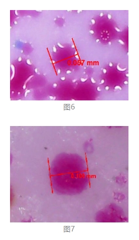 不同的墨水和其對應(yīng)的固化方式,也會對墨滴大小產(chǎn)生影響。比如UV墨水的墨點(diǎn)干燥固化后會比溶劑墨水小很多。因?yàn)閁V墨水是借助UV紫外光瞬間固化,墨滴幾乎沒有擴(kuò)散(如圖6),而溶劑墨水通過水分揮發(fā)和外部烘干系統(tǒng)來烘干,干燥過程緩慢,墨滴會有擴(kuò)散情況(如圖7)。