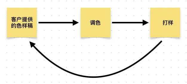 下圖展示了多數數碼打印工廠常見的打樣流程。一般情況下, 客戶需要進行一次兩次甚至三次打樣,才能找到與客戶需求相匹配、或者最接近客戶原稿的、可以接受的顏色選擇。既耽誤時間,也影響了生產效率。
