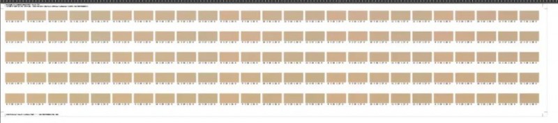 上圖是根據RGB 240.180.120.的顏色打印出來的相鄰的顏色。大家可以注意到, 這里的顏色定義不再是RGB, 而是CMYKOG (這是一臺6色的設備)。在這里,系統(tǒng)通過略微調節(jié)每個通道的顏色,打印出大量的相鄰色,從而幫助找到與客戶實樣最接近的色塊, 并填入設計稿中來實現快速追色。