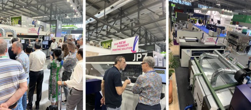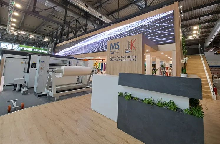 MS Printing Solutions 和 JK Group 在 ITMA 上展示的創(chuàng)新解決方案使涂料印刷成為一種簡化的無水工藝,使客戶能夠建立可持續(xù)的生產(chǎn)鏈,同時實現(xiàn)具有成本效益的印刷輸出。憑借完全集成的在線印刷系統(tǒng),這些公司的產(chǎn)品最大限度地縮短了訂單和生產(chǎn)之間的時間間隔,從而實現(xiàn)了幾乎按需的顏料印刷。通過采用該系統(tǒng),客戶可以最大限度地提高產(chǎn)量,同時顯著降低成本、排放、能源消耗和用水量。