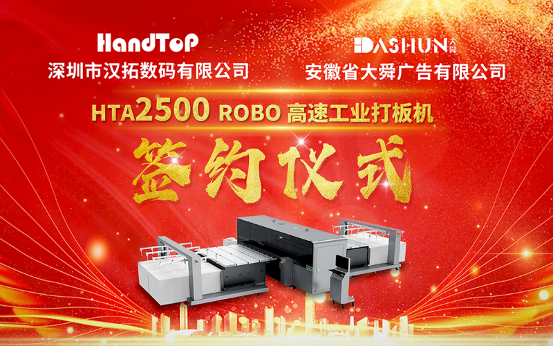 展會期間,捷報頻傳。2月29日上午,大舜廣告(全稱:安徽省大舜廣告有限公司)現(xiàn)場采購一臺HTA2500 ROBO高自動化數(shù)碼打印機。在現(xiàn)場客戶和行業(yè)同仁共同聚焦下,漢拓數(shù)碼與大舜廣告正式簽訂了合作協(xié)議,以期雙方在各自的生產(chǎn)版圖和業(yè)務(wù)版圖實現(xiàn)更大突破,共同開啟互利共贏的美好篇章。