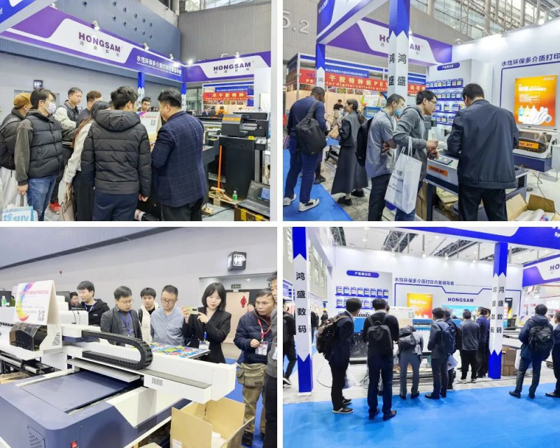 鴻盛數(shù)碼深耕噴墨行業(yè)23載,在本次展會上展出的有數(shù)字印刷類墨水:水性環(huán)保標簽?zāi)?、瓦楞紙顏?染料墨水、書刊專用顏料墨水、木紋紙專用顏料墨水、銅版紙噴墨印刷墨水,水性環(huán)保乳膠墨水打印方案,鴻捷MP804L軟膜包裝、紙張印刷多功能數(shù)碼打樣機,不僅有數(shù)字印刷類墨水,還有打印設(shè)備及解決方案,吸引了眾多行業(yè)內(nèi)外人士的關(guān)注和駐足!