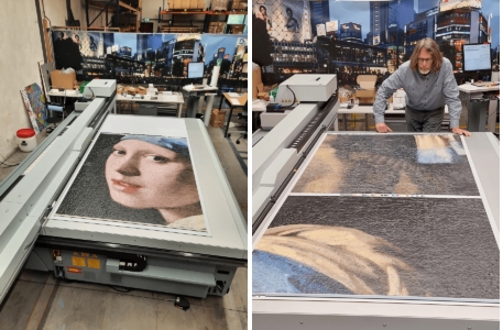 這幅《戴珍珠耳環(huán)的少女》的獨特復制品是世界上最大的此類印刷品,是使用佳能的印刷技術制作的。他們利用 PRISMAelevate XL 軟件和 Canon Production Printing 的 Arizona 平板打印機,采用 UV 墨水進行逐層打印,實現(xiàn)了精確的放大效果。