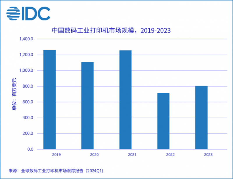 IDC于近日發(fā)布的《全球工業(yè)打印機(jī)市場跟蹤報(bào)告,2024Q1》顯示,2023年,中國國內(nèi)數(shù)碼工業(yè)打印機(jī)整體市場規(guī)模收入高達(dá)8.1億美元,同比上升13.0%。其中大幅面數(shù)碼印刷機(jī)同比上漲12.4%, 數(shù)碼紡織印花機(jī)同比上升9.2%,數(shù)碼工業(yè)標(biāo)簽和包裝印刷機(jī)同比上27.2%。