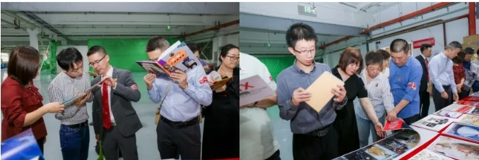 現(xiàn)場(chǎng)觀眾細(xì)致觀察佳能數(shù)碼印刷系統(tǒng)所打印的高品質(zhì)印品