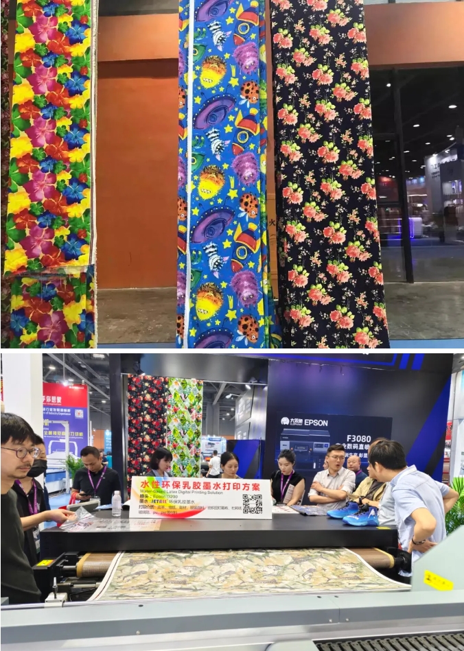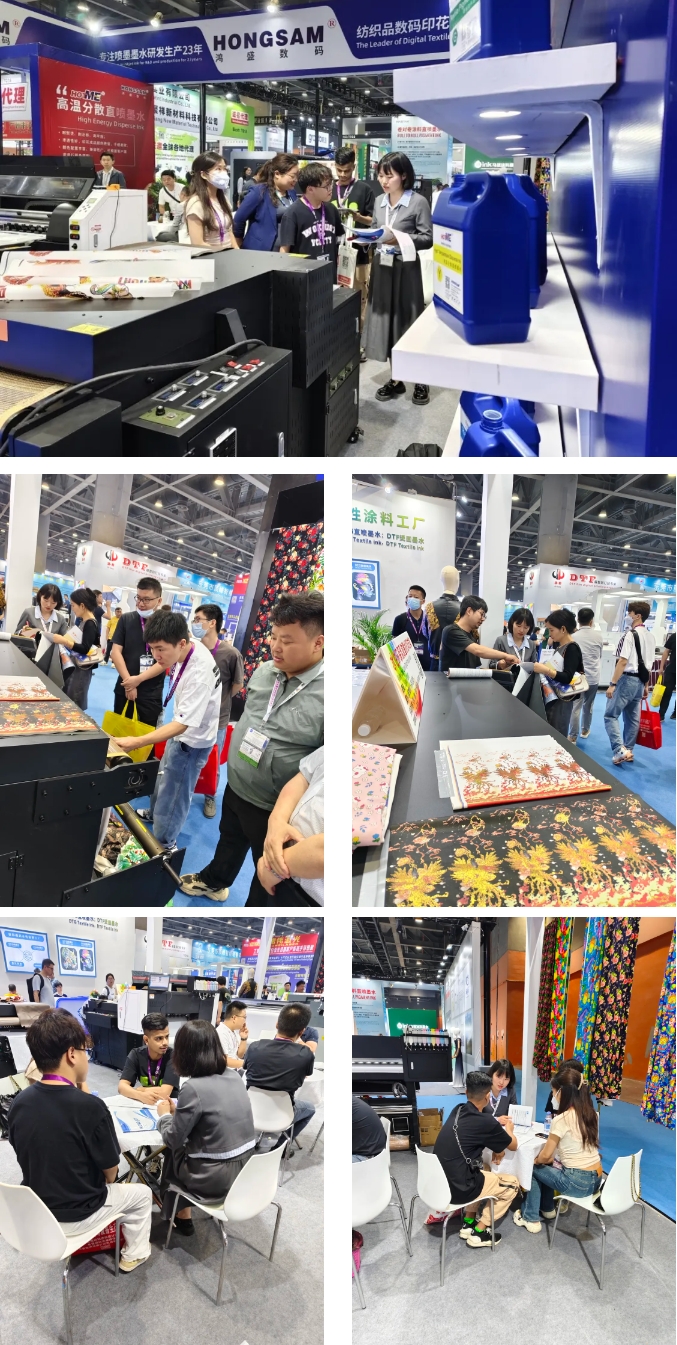 鴻盛數(shù)碼深耕噴墨行業(yè)23年,本次展會展示旗下全系列數(shù)碼印花墨水:捷特絲®紡織涂料墨水、鴻美®分散染料墨水、銳美®活性染料墨水、絲美特®酸性染料墨水、鴻盛陽離子染料墨水及水性環(huán)保乳膠墨水打印方案、不僅涵蓋了墨水及設(shè)備,還滿足不同客戶需求的打印方案,吸引了眾多觀眾前來了解咨詢。